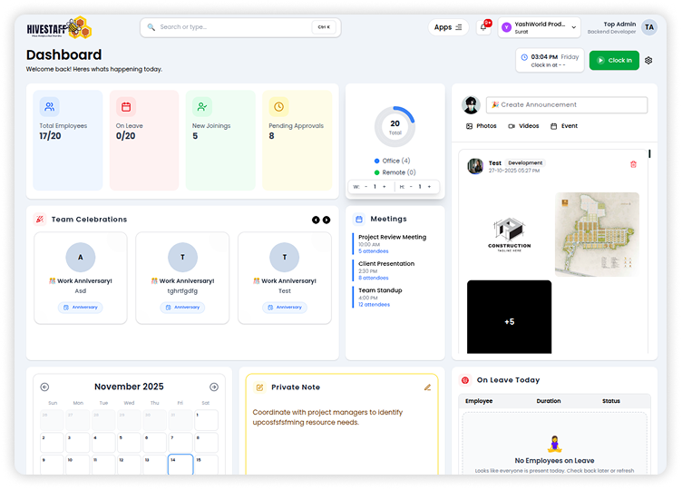 Hivestaff is a powerful all-in-one business management platform designed to unify your operations. Instead of juggling multiple tools for HR, projects, communication, and reporting, Hivestaff brings everything into one smart, centralized workspace.